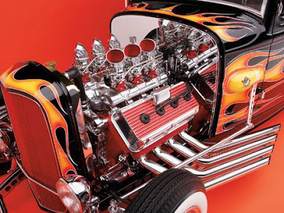 Ford, 1932, negro, motor V8 al aire, cromados, neumáticos con banda blanca y como no, flamings. Una serie de elementos que cuando se combinan todos en un coche dan como resultado bellezas como ésta, un 1932 Ford Sedan destinado a ser el centro de atención en las concentraciones y los salones más afamados.